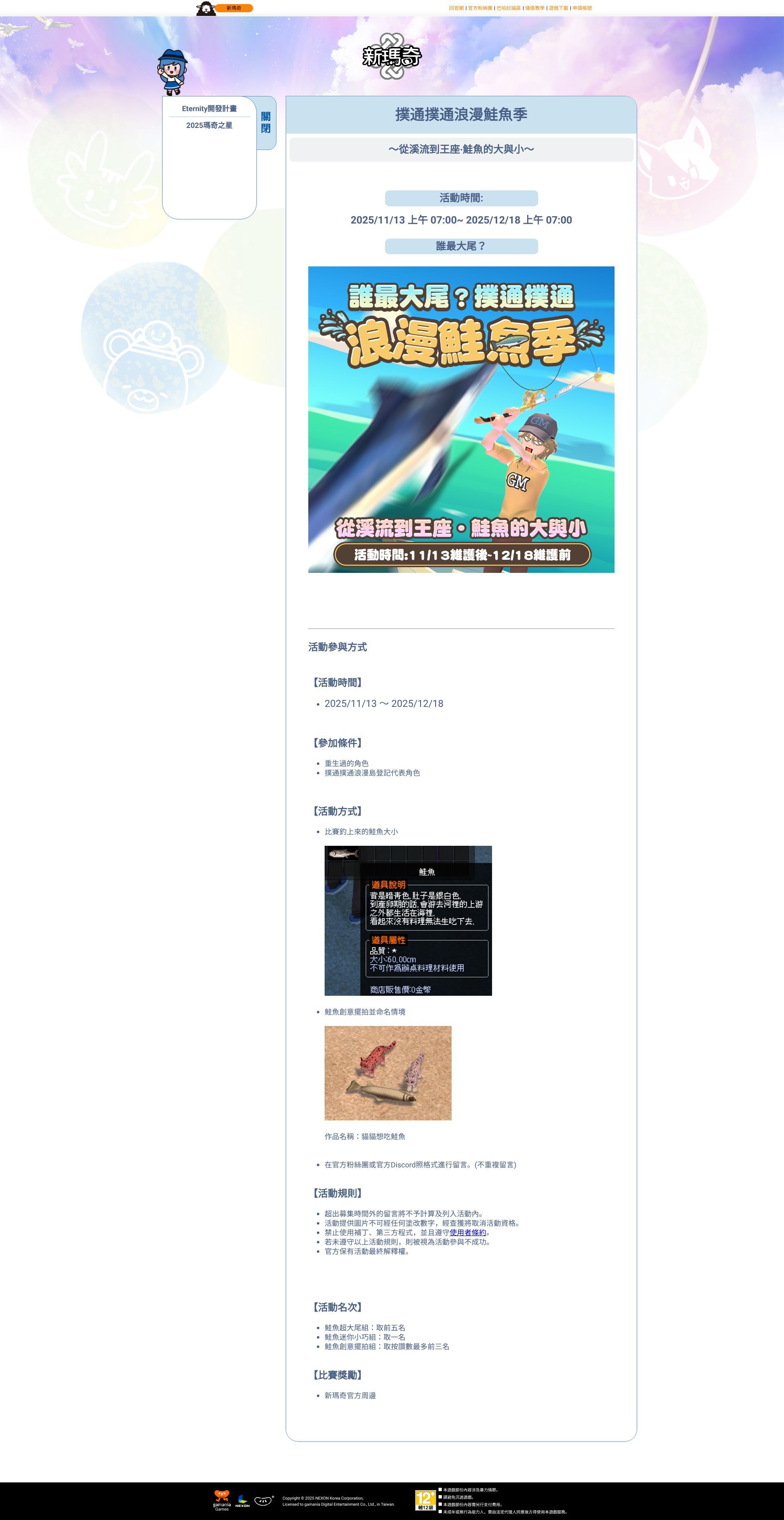 撲通撲通浪漫鮭魚季 活動日期:2025年11月13日 14:00 - 2025年12月18日 07:00