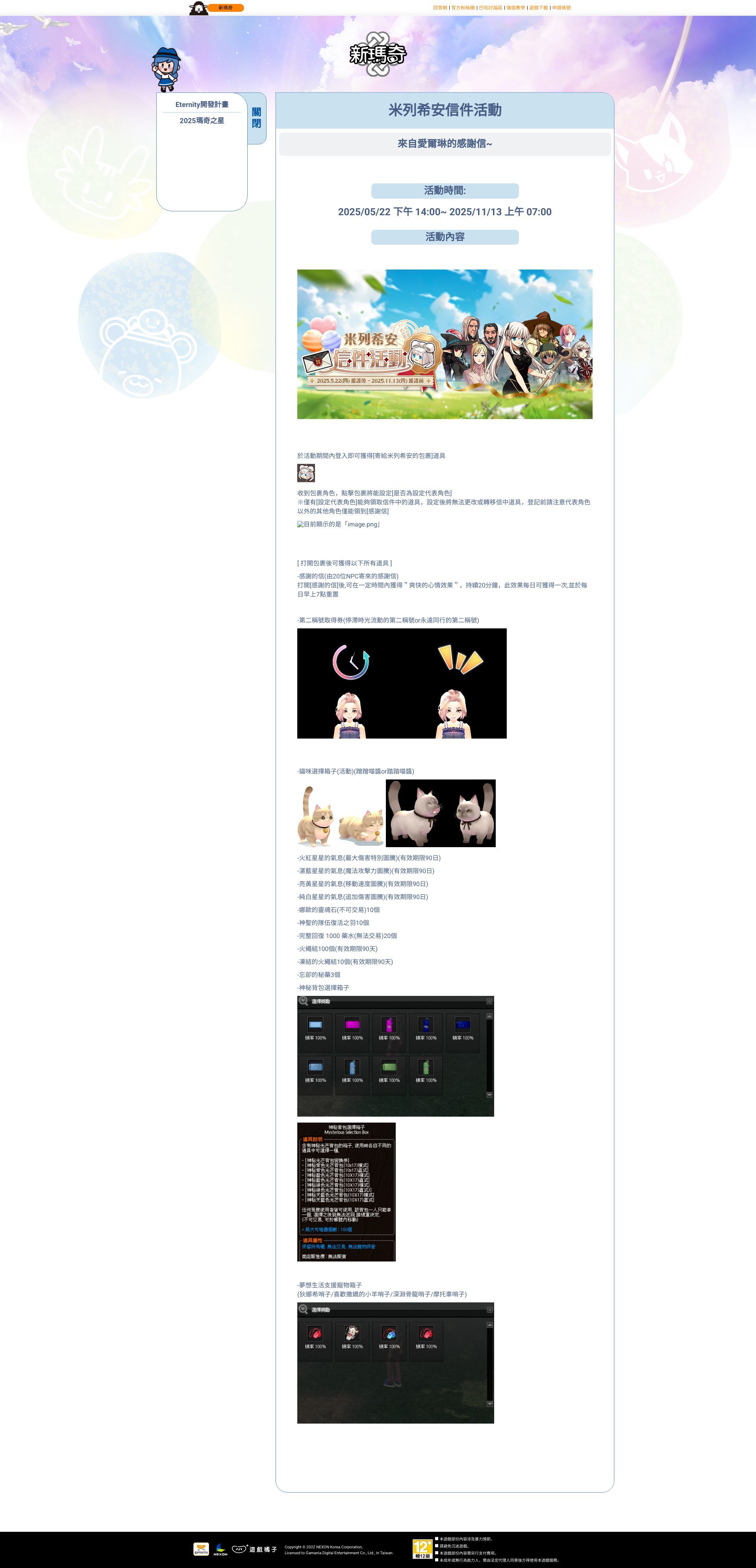 瑪奇20周年 - 米列希安信件活動 活動日期:2025年05月22日 14:00 - 2025年11月13日 07:00